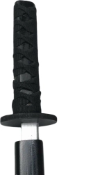Η λαβή είναι πλεγμένη με υφασμάτινο κορδόνι, προσφέροντας ρεαλιστική εμφάνιση και καλύτερο κράτημα κατά τη χρήση. Η κατάνα είναι ελαφριά, καλά ζυγισμένη και ασφαλής για τεχνικές ασκήσεις, καθώς και ως σκηνικό ή διακοσμητικό στοιχείο.