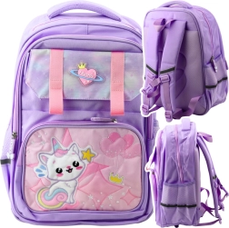 Απολαύστε μοντέρνο στυλ με τη μωβ σχολική μας τσάντα με μοτίβο γάτας και πρακτικά ανακλαστικά στοιχεία. Αυτή η τσάντα συνδυάζει αισθητική, λειτουργικότητα και άνεση, καθιστώντας την ιδανική επιλογή για τις καθημερινές σχολικές περιπέτειες.