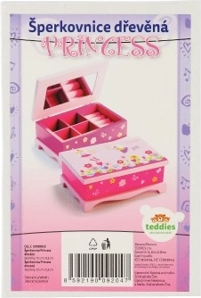 Αυτή η ροζ ξύλινη κοσμηματοθήκη Princess συνδυάζει μαγευτική εμφάνιση με πρακτική διαρρύθμιση. Χάρη στο καθρεφτάκι στην εσωτερική πλευρά του καπακιού και τις πέντε μελετημένες θήκες, βοηθά να διατηρούνται κοσμήματα και μικροαντικείμενα όμορφα τακτοποιημένα. Ο απαλός λουλουδάτος διάκοσμος και η επιγραφή Princess δημιουργούν παραμυθένια ατμόσφαιρα που ταιριάζει ιδανικά σε παιδικό δωμάτιο.