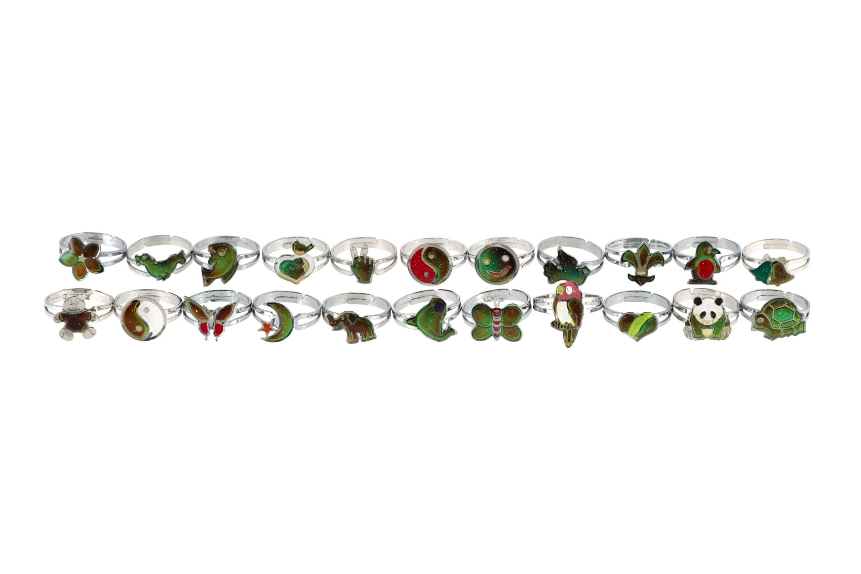 Αυτά τα στιλάτα δαχτυλίδια συνδυάζουν το παιχνίδι με ένα απλό φυσικό φαινόμενο. Η θερμοενεργή στρώση αντιδρά άμεσα στις αλλαγές της θερμοκρασίας του σώματος και δημιουργεί εντυπωσιακά χρωματικά εφέ που τα παιδιά λατρεύουν. Κάθε δαχτυλίδι διαθέτει ρυθμιζόμενη μεταλλική λωρίδα, ώστε να προσαρμόζεται εύκολα στα περισσότερα δάχτυλα.