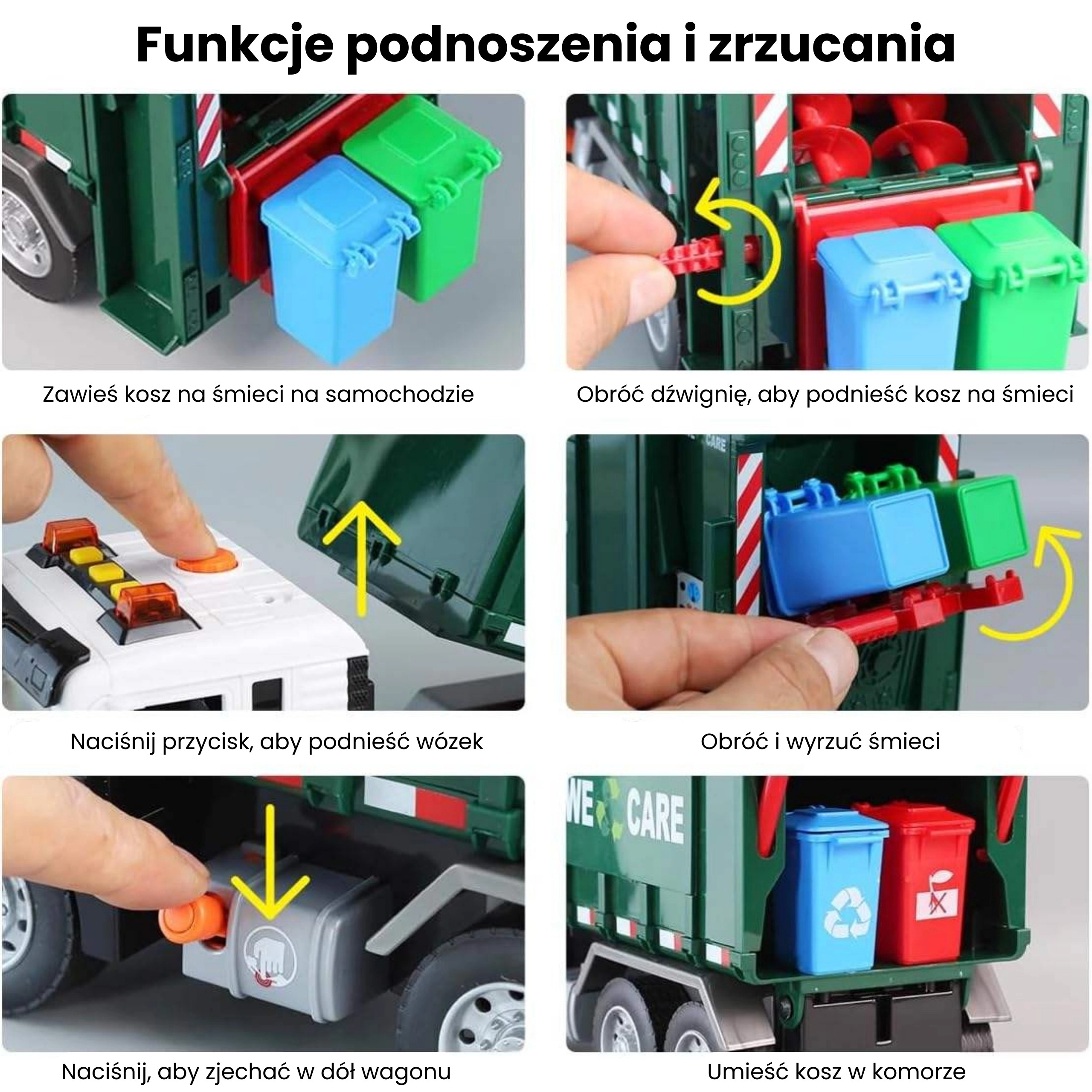 - Φωτεινά και ηχητικά εφέ, ανύψωση κάδων, ανοιγόμενη πίσω θυρίδα, κινούμενα μέρη