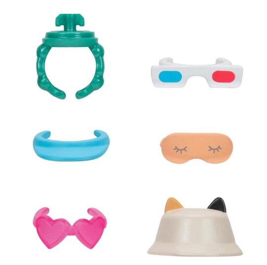 Στη συσκευασία θα βρείτε διάφορα είδη εξαρτημάτων – γυαλιά, στέκες, καπελάκι ή μάσκα ύπνου – που αλλάζονται εύκολα. Αυτό ενισχύει την δημιουργικότητα, τη λεπτή κινητικότητα και το role-play. Το σετ είναι ιδανικό για μοίρασμα με φίλους, ανταλλαγή φιγούρων και δημιουργία μοναδικών fashion συνδυασμών.