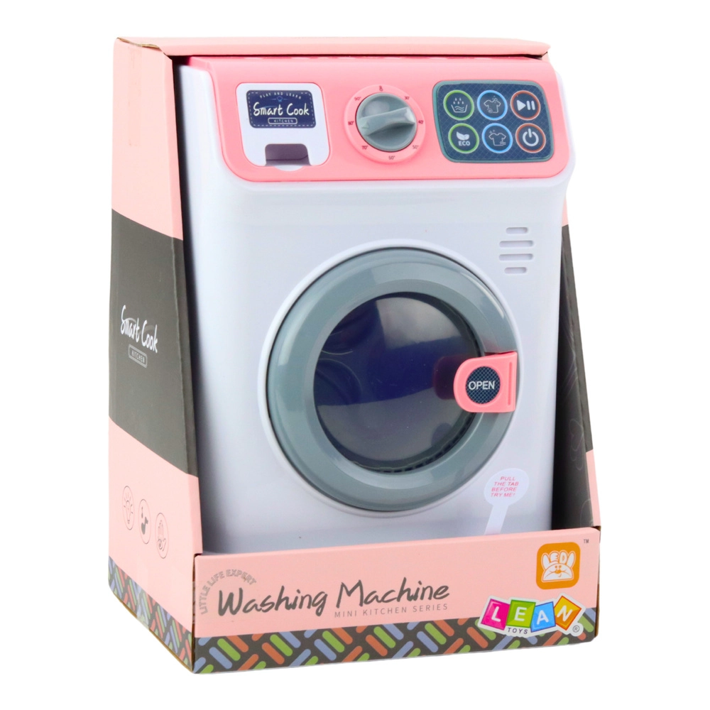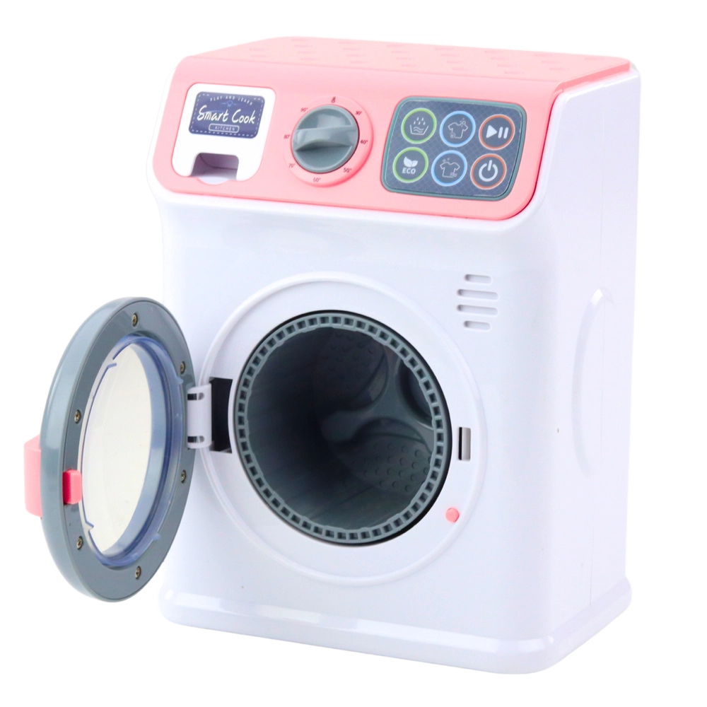 Το παιδικό πλυντήριο ενεργοποιείται με το κουμπί ON/OFF στο πάνελ αφής. Επιλέξτε ένα από τα διαθέσιμα προγράμματα και το πλυντήριο θα ξεκινήσει να λειτουργεί – θα ακούσετε τον ήχο γεμίσματος νερού και ο κάδος θα περιστρέφεται, σαν να ήταν πραγματικό πλυντήριο. Μια ακόμη ευχάριστη λεπτομέρεια είναι ο ανοιγόμενος μπροστινός κάδος και το συρτάρι απορρυπαντικού για ακόμη πιο ρεαλιστικό παιχνίδι.