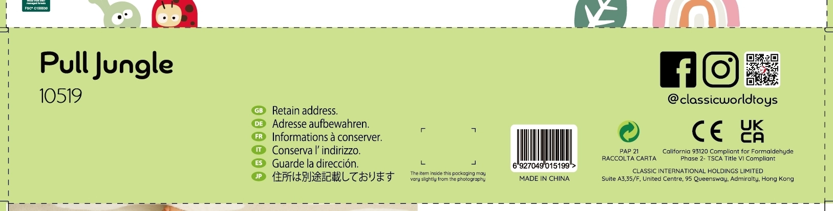 Η ξύλινη Κάμπια από την Classic World σε όμορφα παστέλ χρώματα όχι μόνο ευχαριστεί την όραση των παιδιών σας, αλλά επίσης αναπτύσσει τη φαντασία τους, τον συντονισμό και τις χειρωνακτικές δεξιότητες. Το μοτίβο ζούγκλας γνωρίζει τα παιδιά με τη φύση και καλλιεργεί την οικολογική τους συνείδηση.