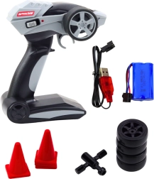 - Κίνηση σε 4 κατευθύνσεις, εφέ drift, LED φώτα (εμπρός, πίσω, νέον), πλήκτρο turbo, ανταλλάξιμα ελαστικά