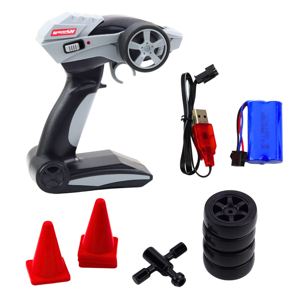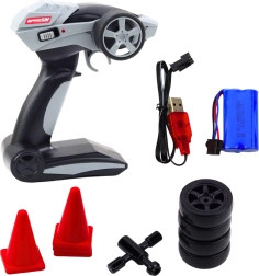 Στο σετ περιλαμβάνεται επίσης εφεδρικό σετ ελαστικών, κλειδί για την αντικατάστασή τους και κώνοι για εξάσκηση drift. Αυτό το μοντέλο αναπτύσσει τις κινητικές δεξιότητες, τα αντανακλαστικά και το πάθος για τεχνολογία και σπορ οδήγηση.