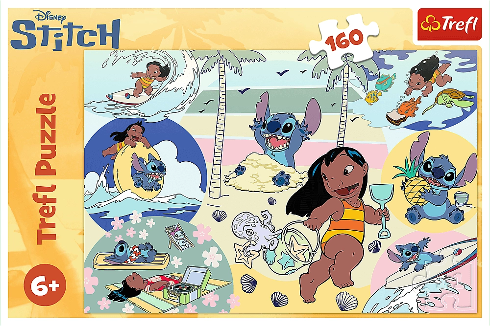 Χαρούμενο παιδικό παζλ με θέμα από την ταινία LILO & STITCH προσφέρει 160 κομμάτια διασκέδασης για μικρούς και μεγάλους θαυμαστές. Ιδανικό για την ανάπτυξη της υπομονής, της λογικής σκέψης και της λεπτής κινητικότητας. Μετά τη συναρμολόγηση η εικόνα έχει πρακτική διάσταση 41 × 27,5 cm, ώστε να χωρά εύκολα σε τραπέζι ή επιφάνεια εργασίας.