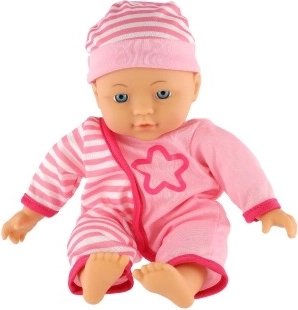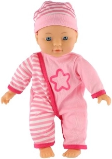 Η κούκλα είναι ντυμένη με όμορφα χρωματιστά ρουχαλάκια που περιλαμβάνουν διάφορα σχέδια και μοτίβα, όπως αστέρια και ρίγες. Οι ρεαλιστικές λεπτομέρειες του προσώπου προσθέτουν αυθεντικότητα και ελκυστικότητα στην κούκλα.