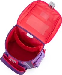 Το σακίδιο αποτελείται από ένα ευρύχωρο κύριο διαμέρισμα που χωρά άνετα όλα τα σχολικά είδη. Ο πάτος του σακιδίου είναι από στιβαρό υλικό για προστασία του περιεχομένου. Το κλείσιμο γίνεται με μεταλλική ασφάλεια ασφαλείας με ανακλαστικό στοιχείο. Η μπροστινή τσεπούλα προορίζεται για κολατσιό και δεν λείπουν τα ανακλαστικά στοιχεία που εξασφαλίζουν ορατότητα.