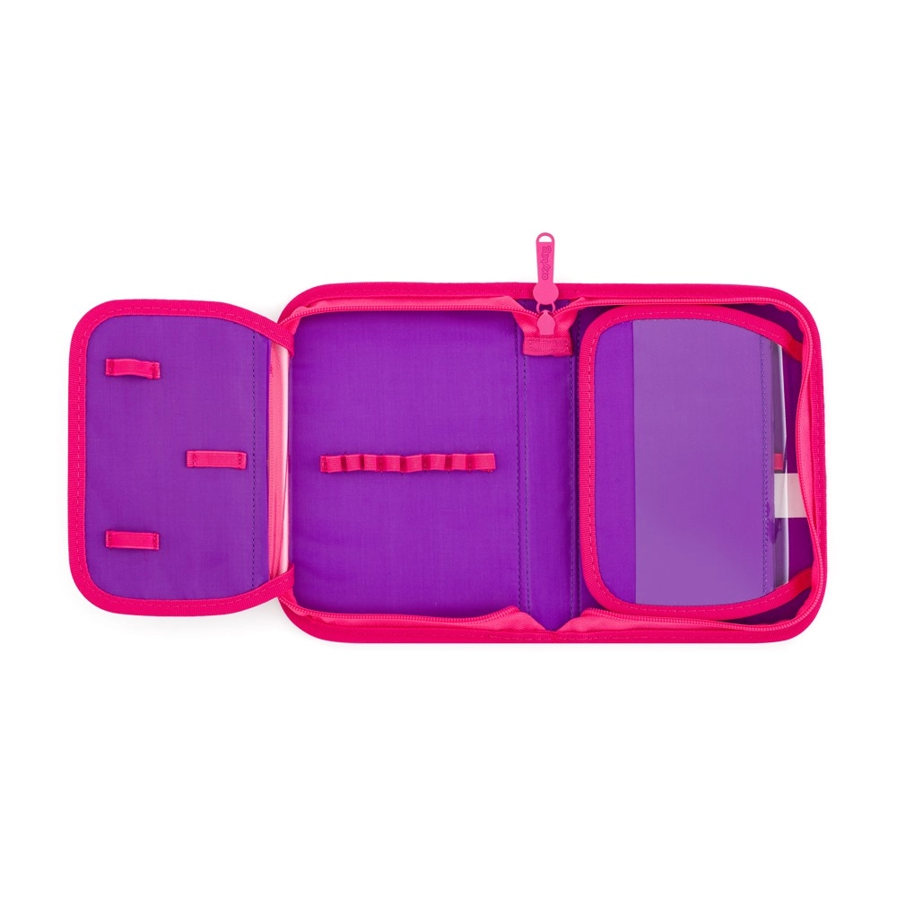 Στο σετ περιλαμβάνεται πρακτικό πουγκί για γυμναστική ή παντοφλάκια, που κλείνει εύκολα τραβώντας τα κορδόνια. Η μονώροφη σχολική κασετίνα με δύο πτερύγια προσφέρει λαστιχένιες θηλιές για στερέωση γραφικών ειδών και διαφανή θήκη για το ωρολόγιο πρόγραμμα.