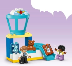 Αυτό το φιλικό σετ με θέμα το αεροδρόμιο βοηθά τα παιδιά να διαχειρίζονται νέες καταστάσεις και συναισθήματα που σχετίζονται με τα ταξίδια. Χάρη στον τροχό συναισθημάτων, οι γονείς μπορούν να μιλήσουν με τα παιδιά για όσα νιώθουν σε ένα πολυσύχναστο αεροδρόμιο ή στην πρώτη τους πτήση. Οι μικροί οικοδόμοι εξασκούν λογική σκέψη και συντονισμό ματιού–χεριού καθώς πακετάρουν τη βαλιτσούλα με μεντεσέδες, περνούν τις αποσκευές από τον σαρωτή και τοποθετούν τις φιγούρες στο κινούμενο αεροπλάνο.