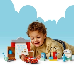Φτιάξτε ένα διασκεδαστικό συνεργείο από την ταινία Disney και Pixar Αυτοκίνητα και φροντίστε τον Κεραυνό Μακουίν! Το διασκεδαστικό σετ LEGO DUPLO με 35 κομμάτια αναπτύσσει τη λεπτή κινητικότητα, τον συντονισμό ματιού–χεριού και το δημιουργικό παιχνίδι χάρη στις πόρτες που ανοίγουν, το πλυντήριο με εύκαμπτο λάστιχο και αξεσουάρ όπως το κλειδί και το ντουλάπι.
