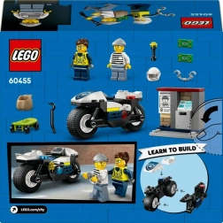 Χαρίστε χαρά σε μικρούς ήρωες από 4 ετών με το σετ δράσης LEGO City Καταδίωξη με αστυνομική μηχανή. Περιλαμβάνει αστυνομική μηχανή με φαρδιά ελαστικά, μικρό ΑΤΜ με χαρτονόμισμα, σκέιτμπορντ του ληστή και 2 μίνι φιγούρες για ώρες δημιουργικού παιχνιδιού και αφήγησης ιστοριών.
