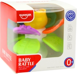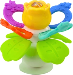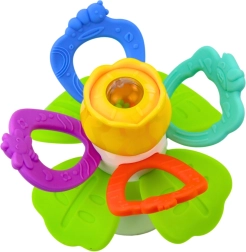 Το περιστρεφόμενο κεντρικό μέρος του λουλουδιού ενθαρρύνει τη δραστηριότητα του παιδιού και την ενδυνάμωση των χεριών. Τα πολύχρωμα πέταλα είναι κατασκευασμένα από μαλακό, ελαστικό υλικό, κατάλληλο για δάγκωμα – ιδανικό κατά την περίοδο οδοντοφυΐας. Εμπλουτισμένο με μικρές μπιλίτσες μέσα στο λουλούδι που κουδουνίζουν απαλά με την κίνηση, διεγείροντας την ακοή και την όραση του παιδιού.