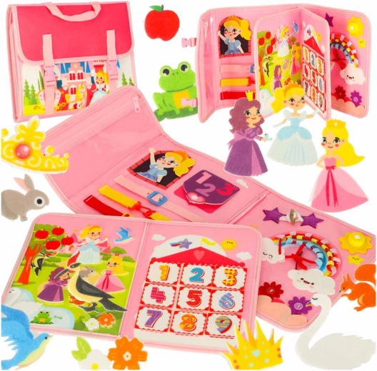 Αυτό το ροζ αισθητηριακό σακίδιο Montessori είναι ο ιδανικός σύντροφος για κάθε περίεργο παιδί. Η κατασκευή του σε μορφή βαλιτσάκι προσφέρει ποικίλα διαδραστικά στοιχεία που αναπτύσσουν τις κινητικές δεξιότητες και ενισχύουν το ενδιαφέρον για τη μάθηση. Έξι διαφορετικές σελίδες προσφέρουν δυνατότητες για παιχνίδι και αλληλεπίδραση: