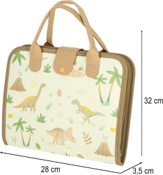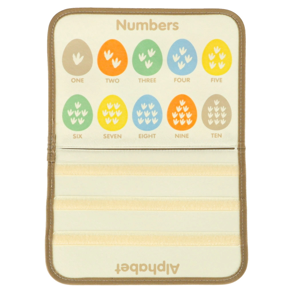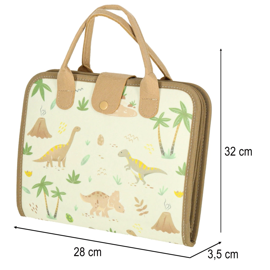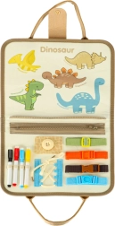 Η βαλίτσα περιλαμβάνει πίνακα μαρκαδόρου και εκπαιδευτικά στοιχεία, χάρη στα οποία τα παιδιά μπορούν να αναπτύξουν γνώσεις μέσω του παιχνιδιού. Διατίθενται επίσης φιγούρες δεινοσαύρων από τσόχα για δημιουργικό παιχνίδι.