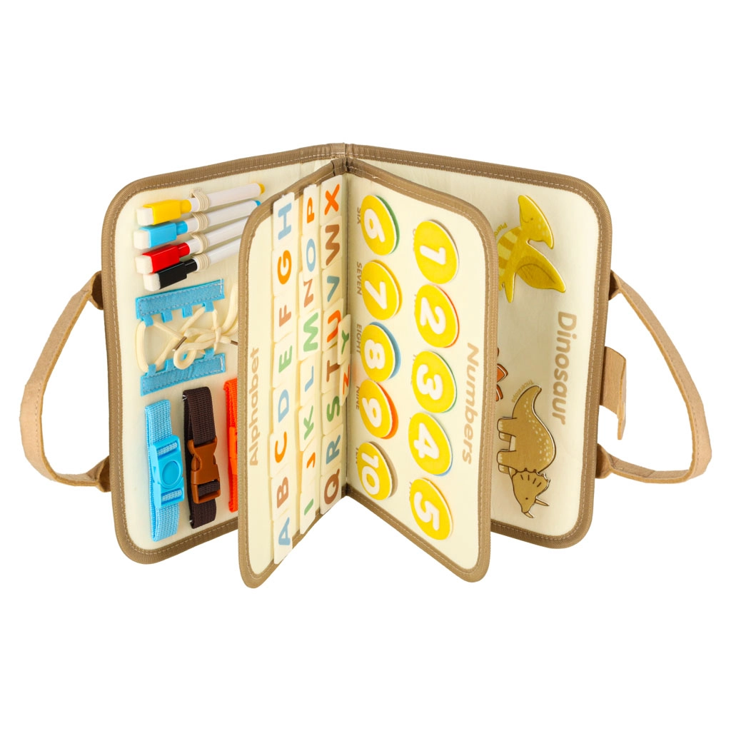 Εκπαιδευτικές δυνατότητες: Στο εσωτερικό θα βρείτε σελίδες από τσόχα για ραψίματα, εκπαιδευτικές κάρτες με γράμματα και αριθμούς, και πίνακα μαρκαδόρου για δημιουργική δραστηριότητα.