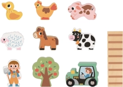- Φιγούρες αγροτικών ζώων: πάπια, κότα, γουρουνάκι, αλογάκι, αγελαδίτσα, προβατάκι