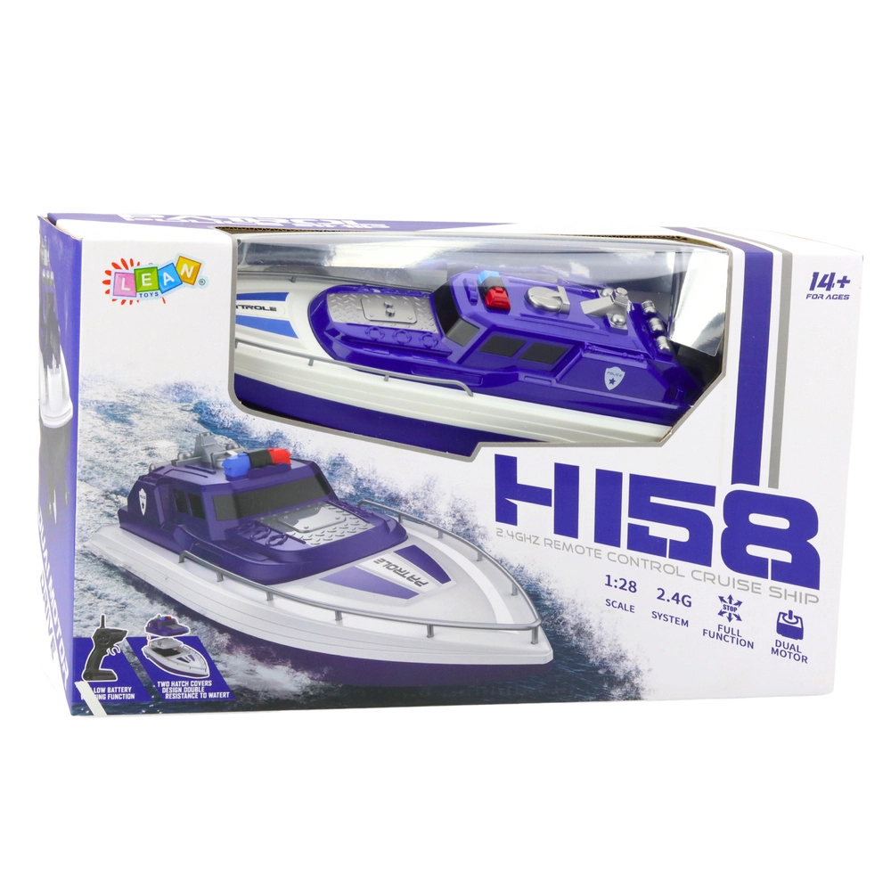 Σας παρουσιάζουμε το μεγάλο αστυνομικό μηχανοκίνητο σκάφος τηλεκατεύθυνσης που προσφέρει ατελείωτες δυνατότητες υδάτινης διασκέδασης. Χάρη στα αυθεντικά χρώματα και τα γραφικά εμπνευσμένα από τις αστυνομικές δυνάμεις, θα μεταφερθείτε στον ρόλο της μονάδας περιπολίας στο νερό.