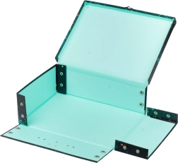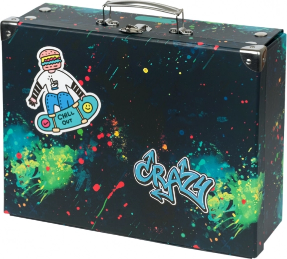 Πρακτική πτυσσόμενη βαλίτσα ιδανική για εικαστικά, παιχνίδια ή μικροαντικείμενα. Χάρη στα κουμπώματα τύπου σούστας η βαλίτσα μπορεί να συναρμολογηθεί και να αποσυναρμολογηθεί εύκολα. Άνετη μεταφορά χάρη στη μεταλλική λαβή.