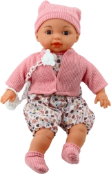 Παιδική κούκλα σε χαριτωμένο σετ που περιλαμβάνει μαλακό ροζ ζακετάκι, σκουφάκι με αυτάκια και παντελόνι με σχέδια. Τα ρούχα αφαιρούνται εύκολα, επιτρέποντας να προσαρμόσετε το παιχνίδι σύμφωνα με τις προτιμήσεις σας. Χάρη στην ρεαλιστική εμφάνιση, με ανοιχτό στόμα και ανοιχτά μάτια, θυμίζει πραγματικό μωρό, ενθαρρύνοντας τα παιδιά να αναπτύξουν φροντίδα και υπευθυνότητα.