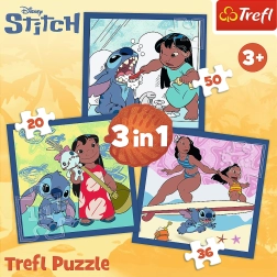 Ανακαλύψτε το διασκεδαστικό παζλ 3 σε 1 με τους αγαπημένους ήρωες από το LILO & STITCH. Καθεμία από τις τρεις συνθέσεις έχει διαφορετικό αριθμό κομματιών, ώστε το παιδί να επιλέγει δυσκολία ανάλογα με τη διάθεση και την ηλικία του. Αφού ολοκληρωθούν, προκύπτουν τρεις πολύχρωμες εικόνες, με τη μεγαλύτερη να μετρά 200 × 195 mm.