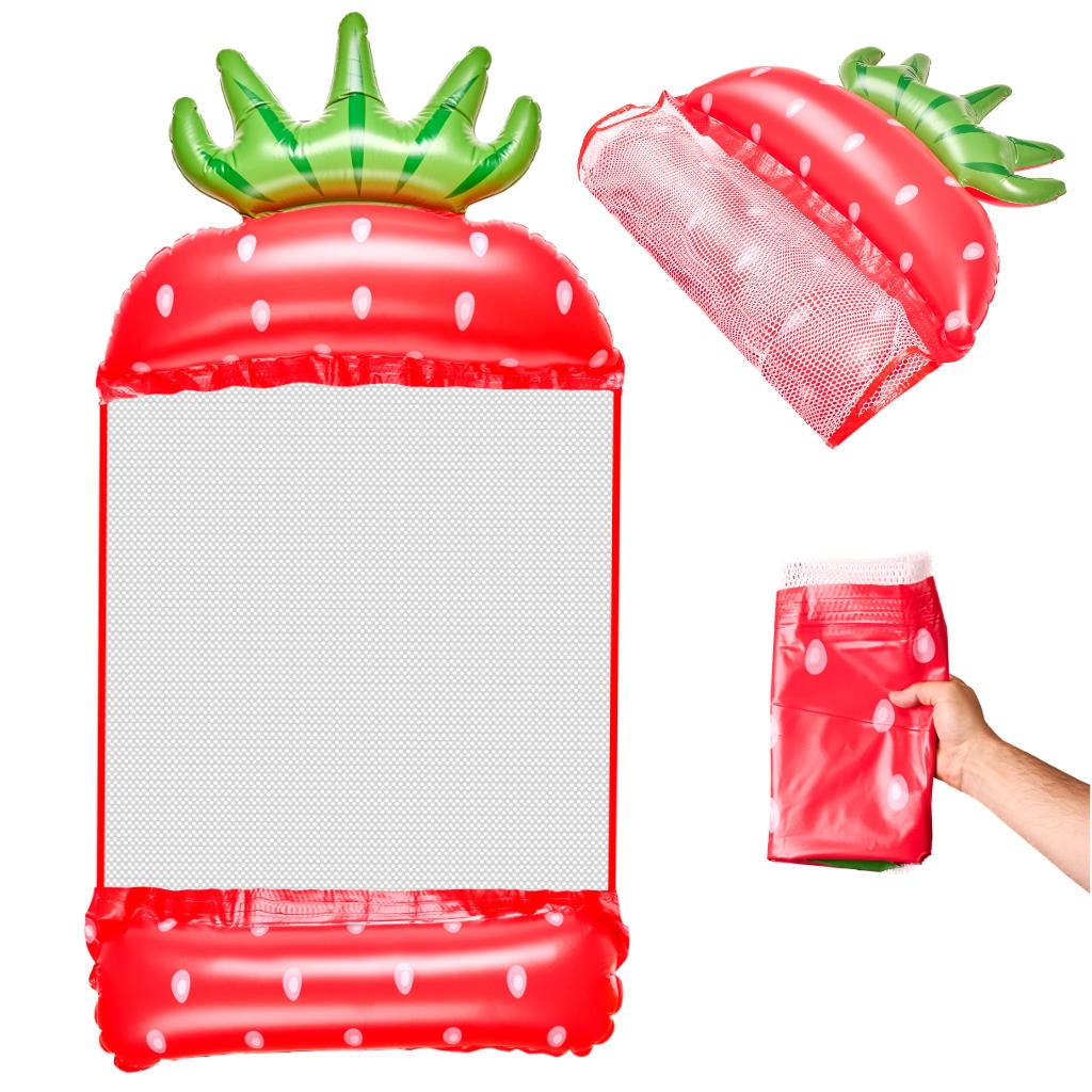 Απολαύστε καλοκαιρινές περιπέτειες με αυτό το στιλάτο φουσκωτό υδάτινο αιώρημα-δίχτυ σε σχήμα φράουλας. Ιδανικό για χαλάρωση στην πισίνα, εύκολο στη μεταφορά και άνετο στη χρήση. Ο ελαφρύς σχεδιασμός και τα ζωντανά χρώματα εξασφαλίζουν διασκέδαση στο νερό.