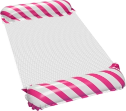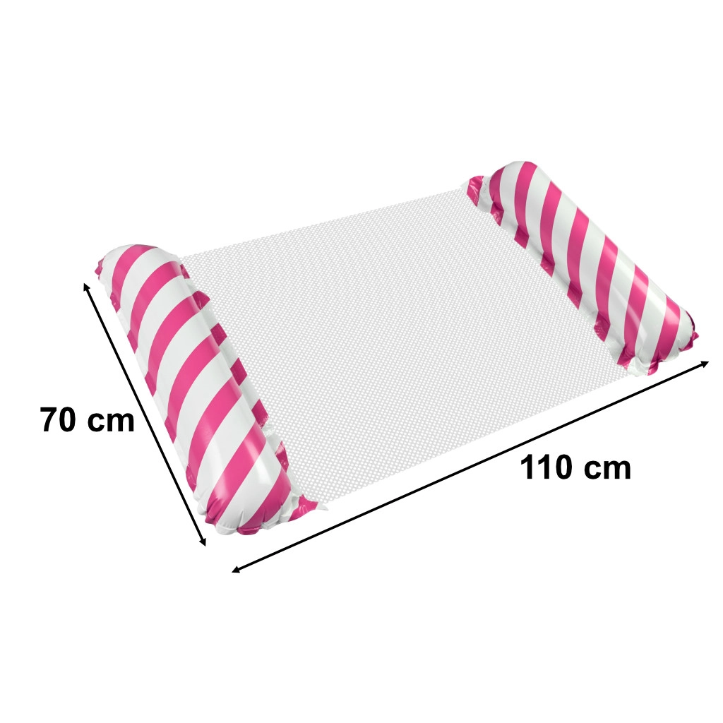 Το φουσκωτό στρώμα με άνετη κατασκευή επιτρέπει να κάθεστε ή να ξαπλώνετε στο νερό με ηρεμία. Ο σχεδιασμός με ροζ-λευκές ρίγες είναι εύκολα ορατός, προσδίδοντας στο στρώμα επιπλέον ελκυστικότητα. Όταν ξεφουσκώνει, χάρη στην εύκολη αποθήκευση είναι συμπαγές και κατάλληλο για κάθε ταξιδιώτη.