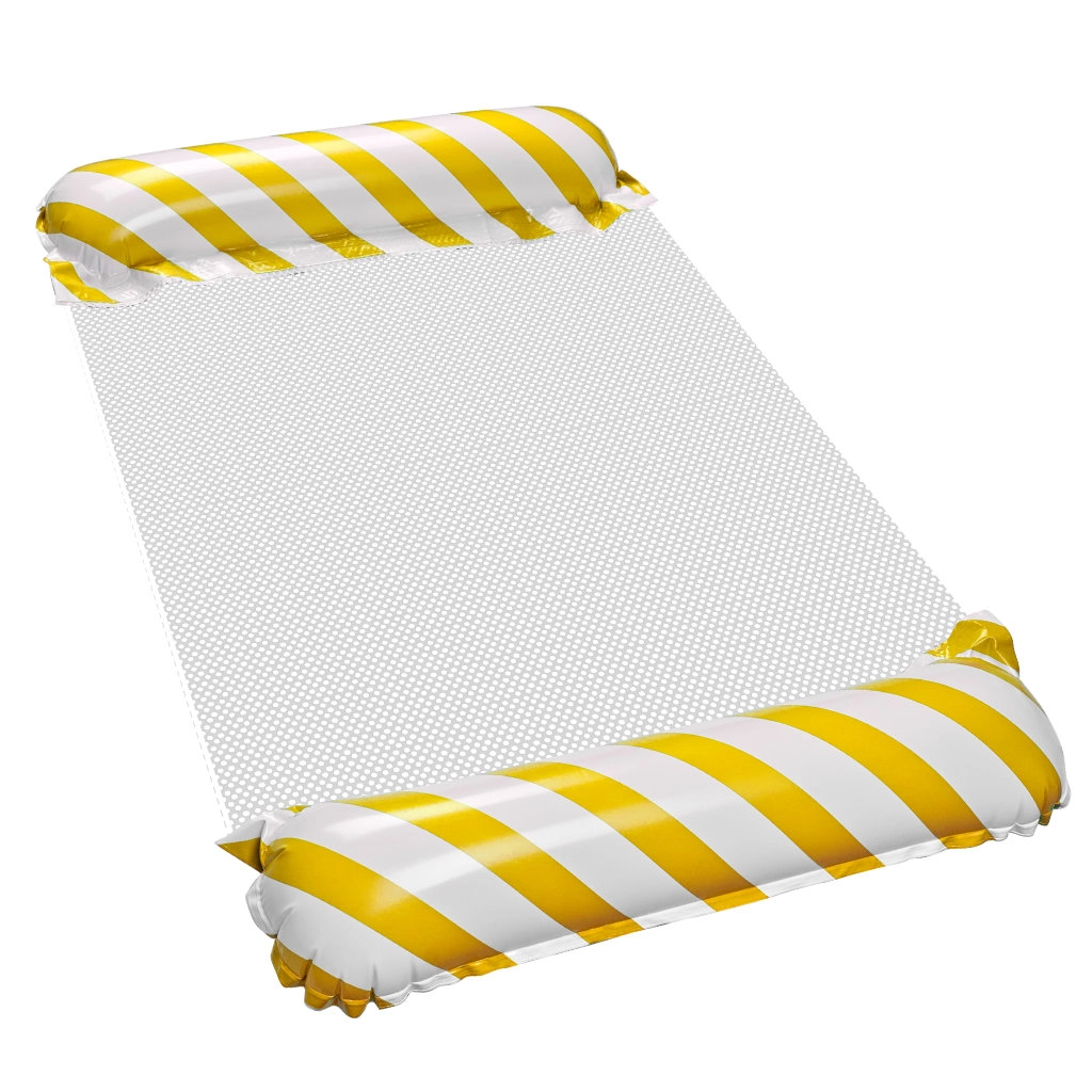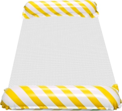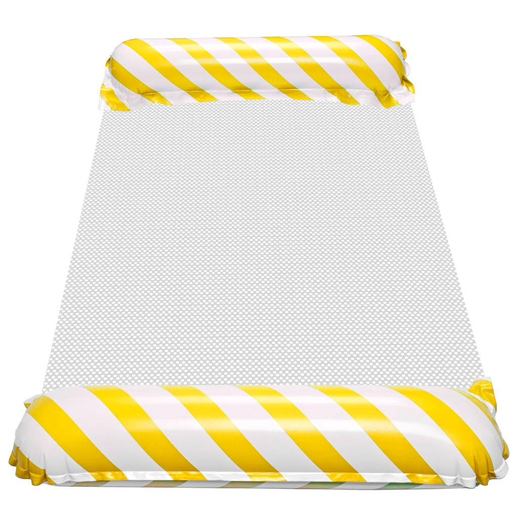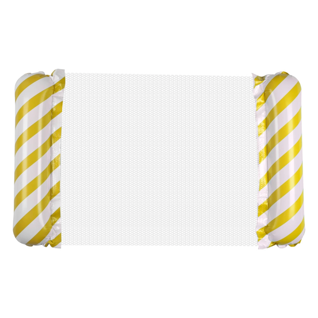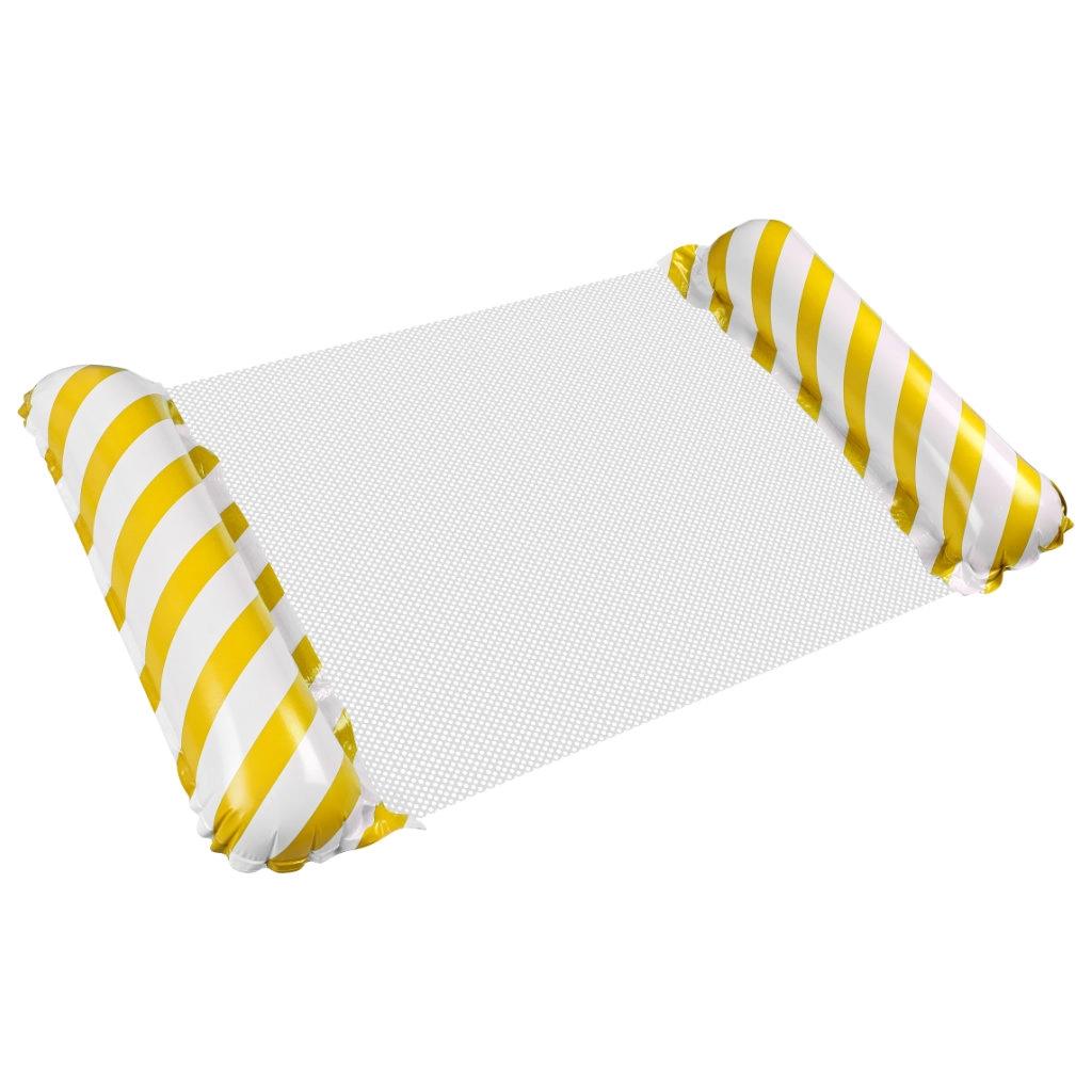 Απολαύστε την ξεκούραση στην παραλία ή την πισίνα με αυτό το λευκοκίτρινο στρώμα. Οι φουσκωτές πλευρές εξασφαλίζουν ισορροπία, ενώ το ανθεκτικό δίχτυ στηρίζει το σώμα σας πάνω στο νερό. Είναι σχεδιασμένο για να προσφέρει άνεση τόσο για ξάπλωμα όσο και για κάθισμα σε ήρεμη υδάτινη επιφάνεια.