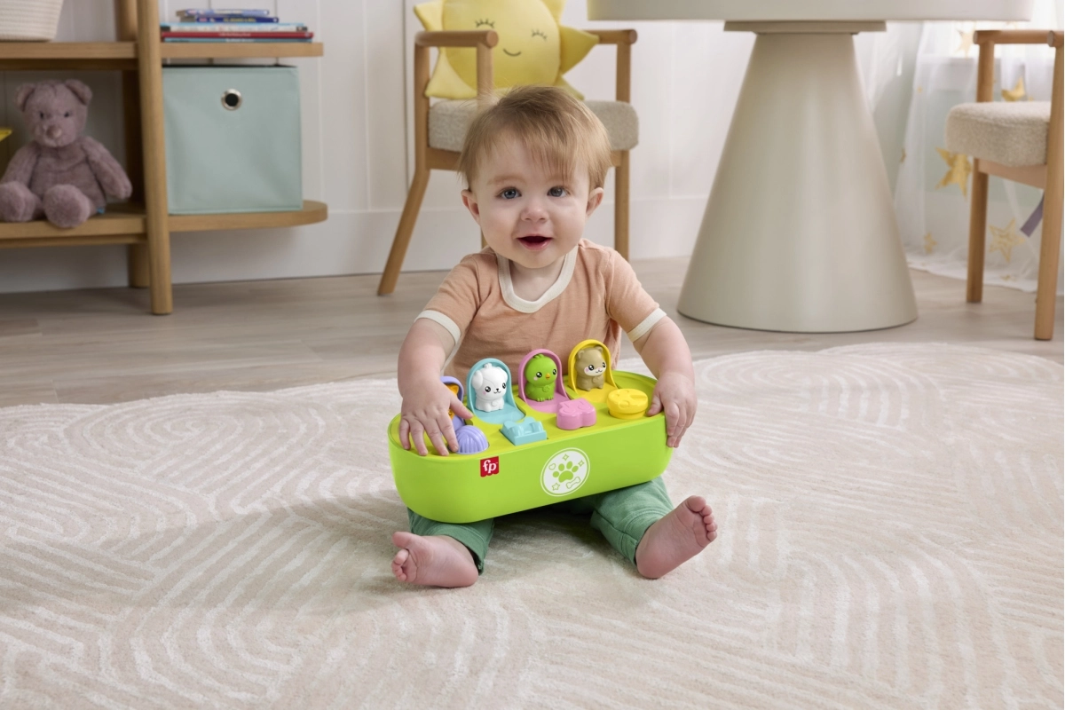 Αυτό το πολύχρωμο αναδυόμενο παιχνίδι με φιγούρες ζωάκιων προσφέρει στα παιδιά ατελείωτες ανακαλύψεις: σε κάθε παραθυράκι αντιστοιχεί διαφορετική κίνηση – πάτημα, σύρσιμο, στρίψιμο ή εναλλαγή. Για κάθε σωστή ενέργεια έρχεται ανταμοιβή με ένα αναδυόμενο φιλαράκι, ενισχύοντας την κατανόηση της αιτιότητας και εξασκώντας τον συντονισμό ματιού–χεριού.