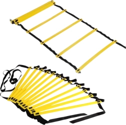 Η εκπαιδευτική σκάλα είναι κατασκευασμένη από ανθεκτικό PVC και ιμάντες πολυαιθυλενίου, γεγονός που την καθιστά ανθεκτική στη συχνή και έντονη χρήση, τόσο σε εσωτερικούς όσο και σε εξωτερικούς χώρους. Η σκάλα διαθέτει 12 ρυθμιζόμενα σκαλοπάτια που επιτρέπουν προσαρμογή των αποστάσεων ανάλογα με τις συγκεκριμένες ασκήσεις και το επίπεδο του χρήστη.