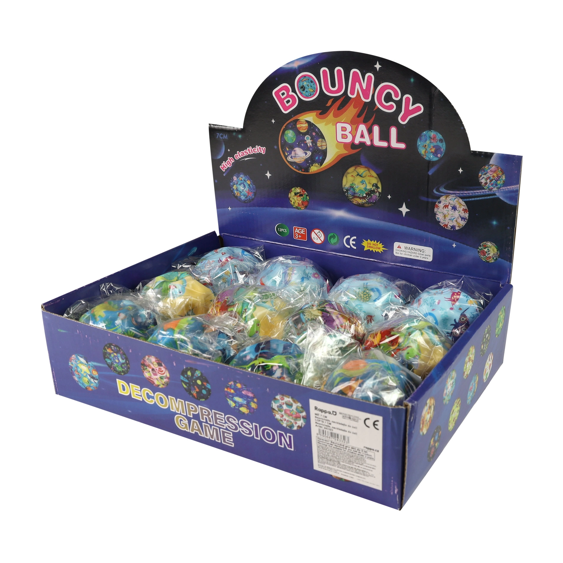 Διασκεδαστική πηδηχτή μπαλίτσα με εκτύπωση αγαπημένων δεινοσαύρων, διαμέτρου 7 εκ., προσφέρει ατέλειωτη διασκέδαση για παιδιά και ενήλικες. Χάρη στο μαλακό και ελαστικό υλικό πηδάει ψηλά, ιδανική για παιχνίδι στο σπίτι, έξω και στο σχολείο. Πωλείται μόνο σε ολόκληρες συσκευασίες 12 τεμ. με ανάμικτα σχέδια.
