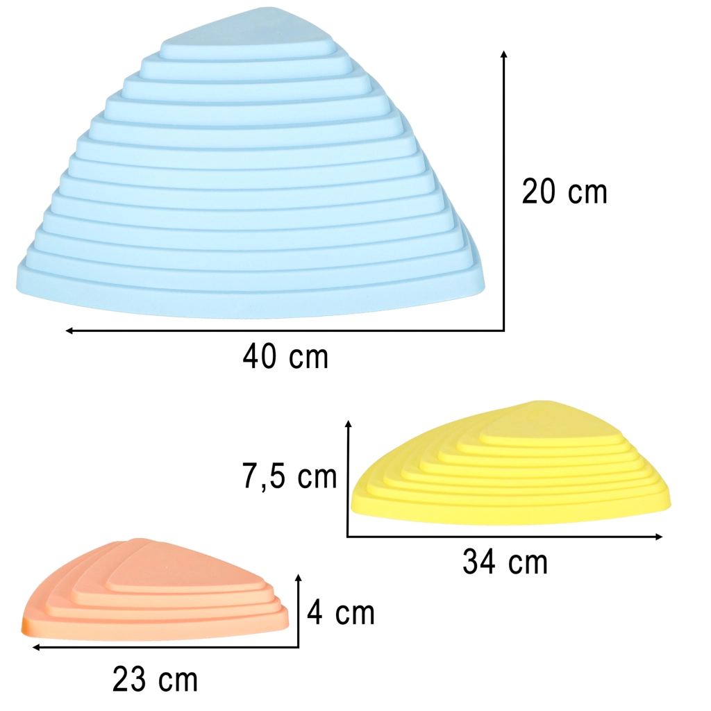 Οι πέτρες ισορροπίας προσφέρουν έναν ασφαλή και ευέλικτο χώρο για παιχνίδι, τόσο στο σπίτι όσο και σε νηπιαγωγεία ή θεραπευτικούς χώρους. Σύμφωνα με τη μέθοδο Montessori, αυτές οι γεωμετρικές πέτρες διαφορετικών υψών διδάσκουν τα παιδιά να σχεδιάζουν κινήσεις, να διατηρούν ισορροπία και να συγκεντρώνονται.