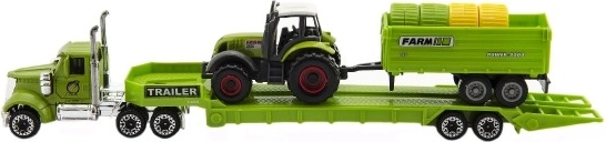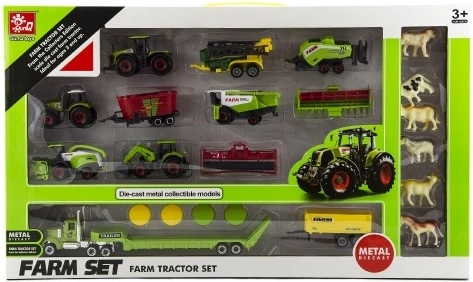 Το σετ περιλαμβάνει διάφορους τύπους οχημάτων, όπως τρακτέρ και ρυμουλκούμενα. Με την ρεαλιστική εμφάνιση και τα κινούμενα μέρη του, αυτό το παιχνίδι προσφέρει ατέλειωτες ώρες διασκέδασης. Η συσκευασία διαστάσεων 53x31x5 cm κρατά όλα τα κομμάτια τακτοποιημένα.