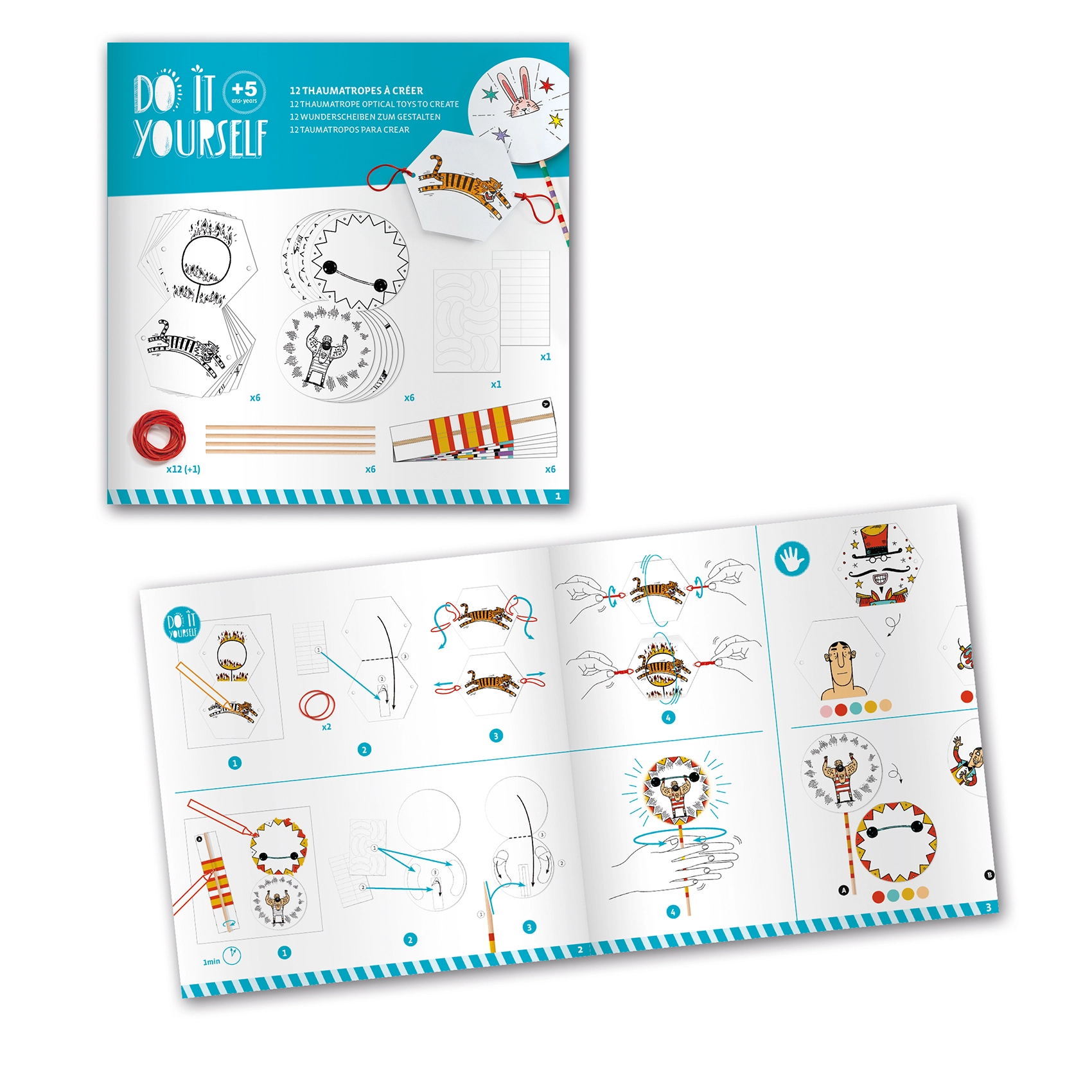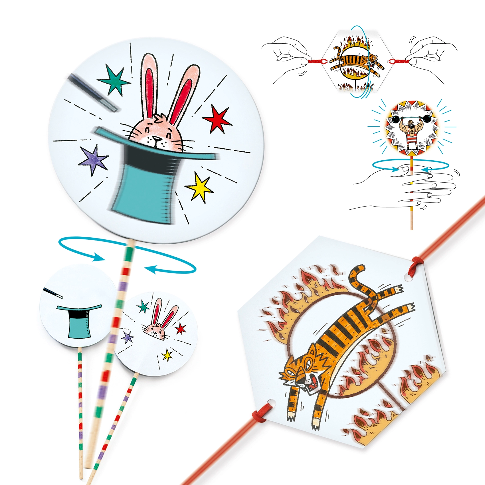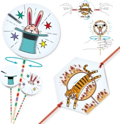 Ανακαλύψτε τη μαγεία των παλαιών οπτικών ψευδαισθήσεων με το DJeco DIY θαυματρόπιο Τσίρκο, όπου τα παιδιά μπορούν να δημιουργούν τις δικές τους κινούμενες ιστορίες με μοναδικές στρογγυλές κάρτες και κορδέλες.