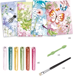 DJECO Λείανση με άμμο Λαμπερά πεταλουδάκια είναι ένα δημιουργικό σετ που επιτρέπει στα παιδιά να φτιάχνουν υπέροχες και λαμπερές πεταλούδες με τη βοήθεια άμμου.
