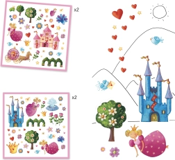 - Πάνω από 100 ποικίλα αυτοκόλλητα με πριγκίπισσες, κάστρα και άλλα μαγικά μοτίβα.