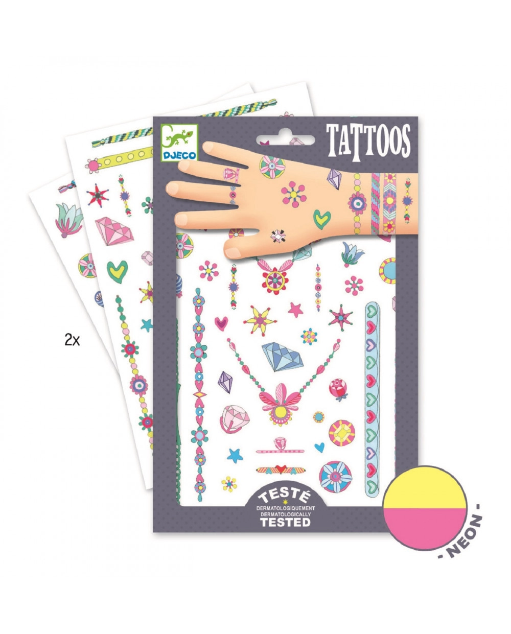 Ανακαλύψτε τη μαγεία των τατουάζ DJECO, που επιτρέπουν στα παιδιά να αναπτύξουν τη φαντασία τους και να εκφράσουν το προσωπικό τους στυλ. Το σετ περιλαμβάνει διάφορα σχέδια και μοτίβα που είναι ασφαλή και εύχρηστα.