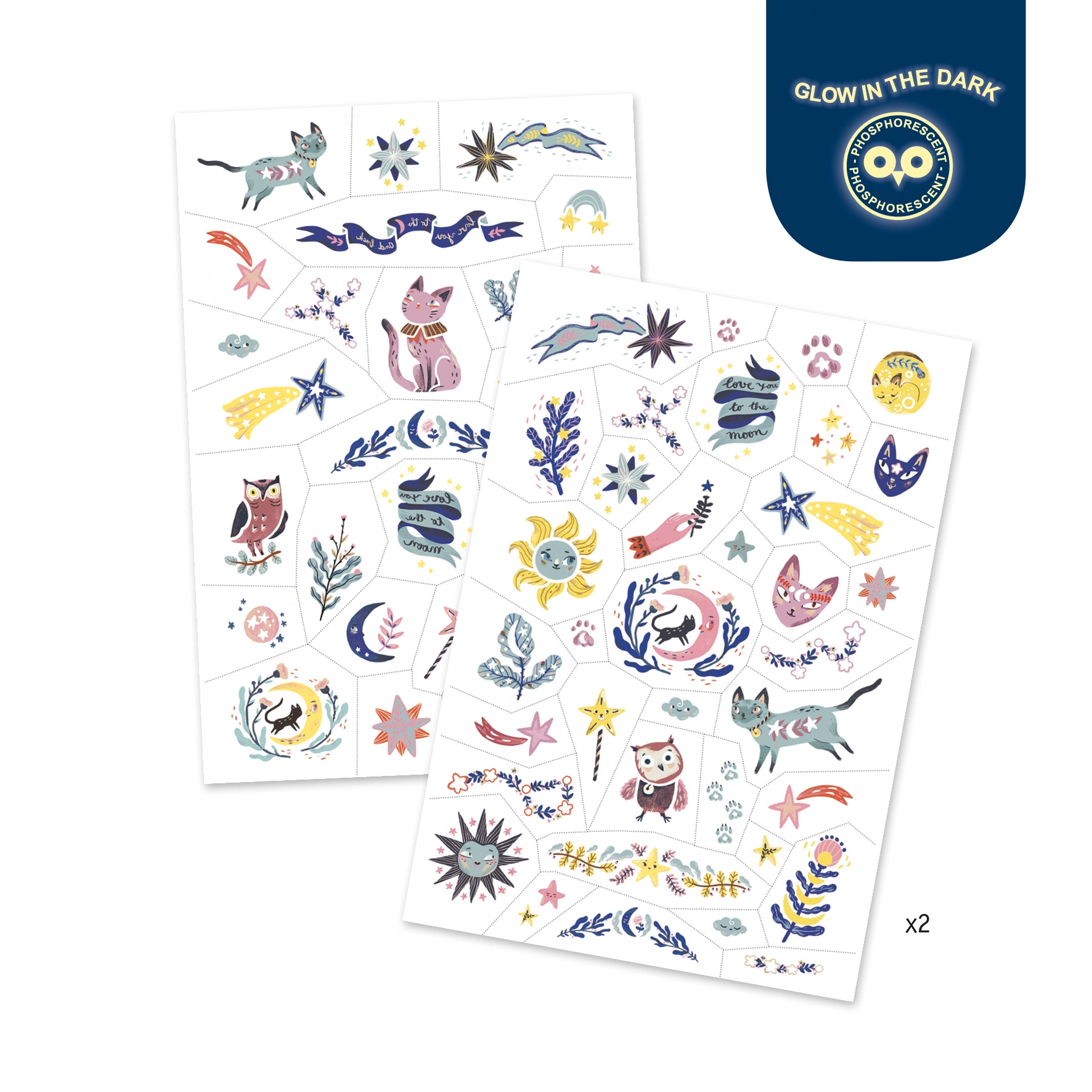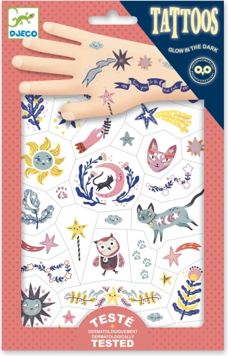 Τατουάζ Ευτυχισμένα Όνειρα από τη Djeco είναι ένα μαγευτικό σετ λαμπερών τατουάζ που θα απογειώσει κάθε παιδική διασκέδαση και θα τη μετατρέψει σε μια αξέχαστη εμπειρία.