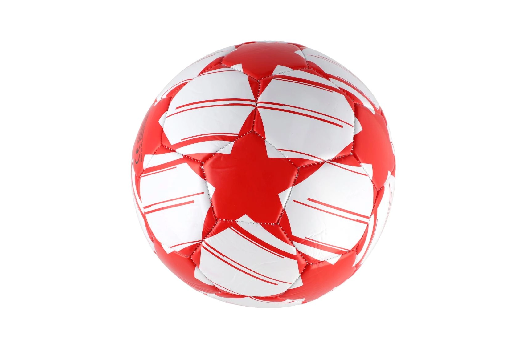 Φουσκωμένη και ραμμένη μπάλα ποδοσφαίρου σε κόκκινο-λευκό χρώμα, η οποία αποτελεί την ιδανική επιλογή για μικρούς ποδοσφαιριστές. Η μπάλα έχει σχεδιαστεί ώστε να είναι ελαφριά, εύκολη στον χειρισμό και κατάλληλη για την ανάπτυξη κινητικών δεξιοτήτων.