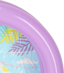 Κατασκευασμένη από ποιοτικό PVC και εξοπλισμένη με βαλβίδες ασφαλείας, η πισίνα είναι ελαφριά και εύκολα μεταφερόμενη. Οι δύο φουσκωτοί δακτύλιοι προσφέρουν σταθερότητα και τα πολύχρωμα μοτίβα στον πυθμένα χαρίζουν χαρούμενη ατμόσφαιρα σε κάθε παιχνίδι στο νερό.
