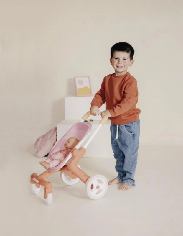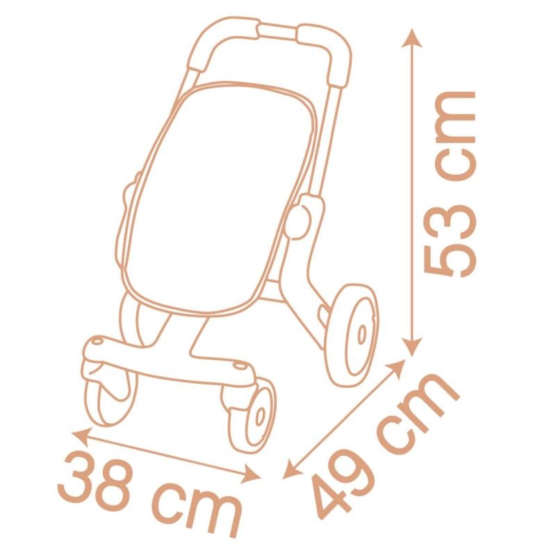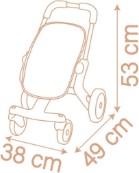Αυτό το καροτσάκι για κούκλες προσφέρει εύκολη οδήγηση και χειρισμό χάρη στους μπροστινούς τροχούς που περιστρέφονται κατά 360 μοίρες. Το ελαφρύ και ανθεκτικό πλαστικό πλαίσιο εξασφαλίζει μεγάλη αντοχή και άνετη χρήση. Η συντήρηση είναι παιχνιδάκι: αρκεί να βρέξετε ένα σφουγγαράκι με νερό και να καθαρίσετε εύκολα το καροτσάκι, ιδανικό όταν λερωθεί κατά το παιχνίδι. Το καροτσάκι είναι κατάλληλο για κούκλες έως 42 cm, ωστόσο οι κούκλες δεν περιλαμβάνονται στη συσκευασία.