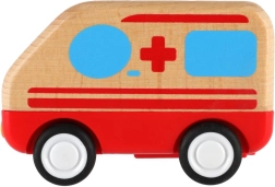 Στυλάτο ξύλινο ασθενοφόρο με μηχανισμό αδράνειας, που προσφέρει υπέροχη διασκέδαση πάνω σε ροδάκια για τους μικρούς. Αρκεί ένα απαλό σπρώξιμο και το ασθενοφόρο ξεκινά γρήγορα για βοήθεια, κάτι που διασκεδάζει απίστευτα τα παιδιά.