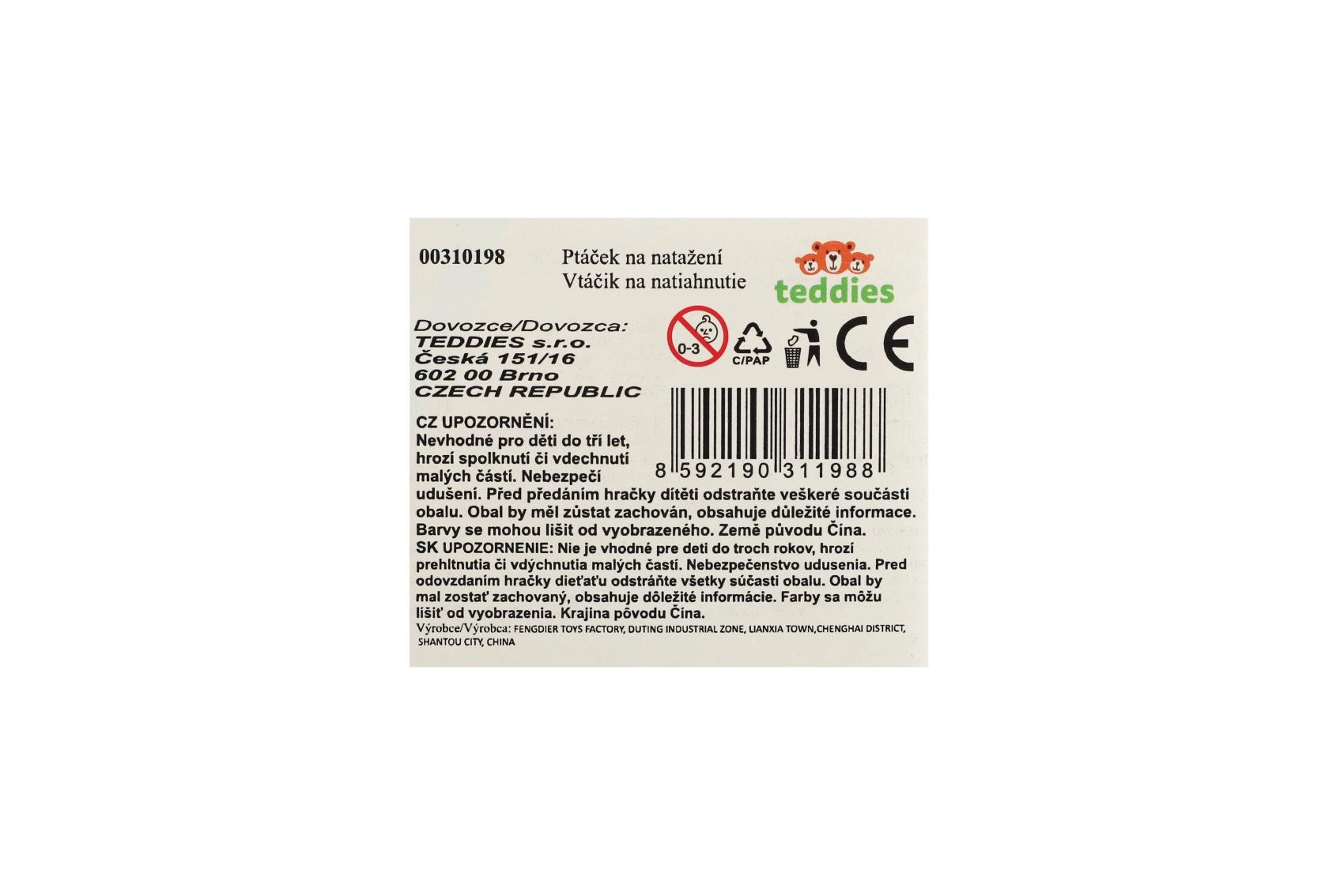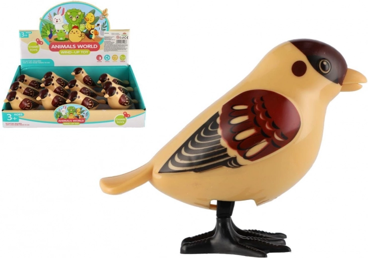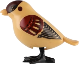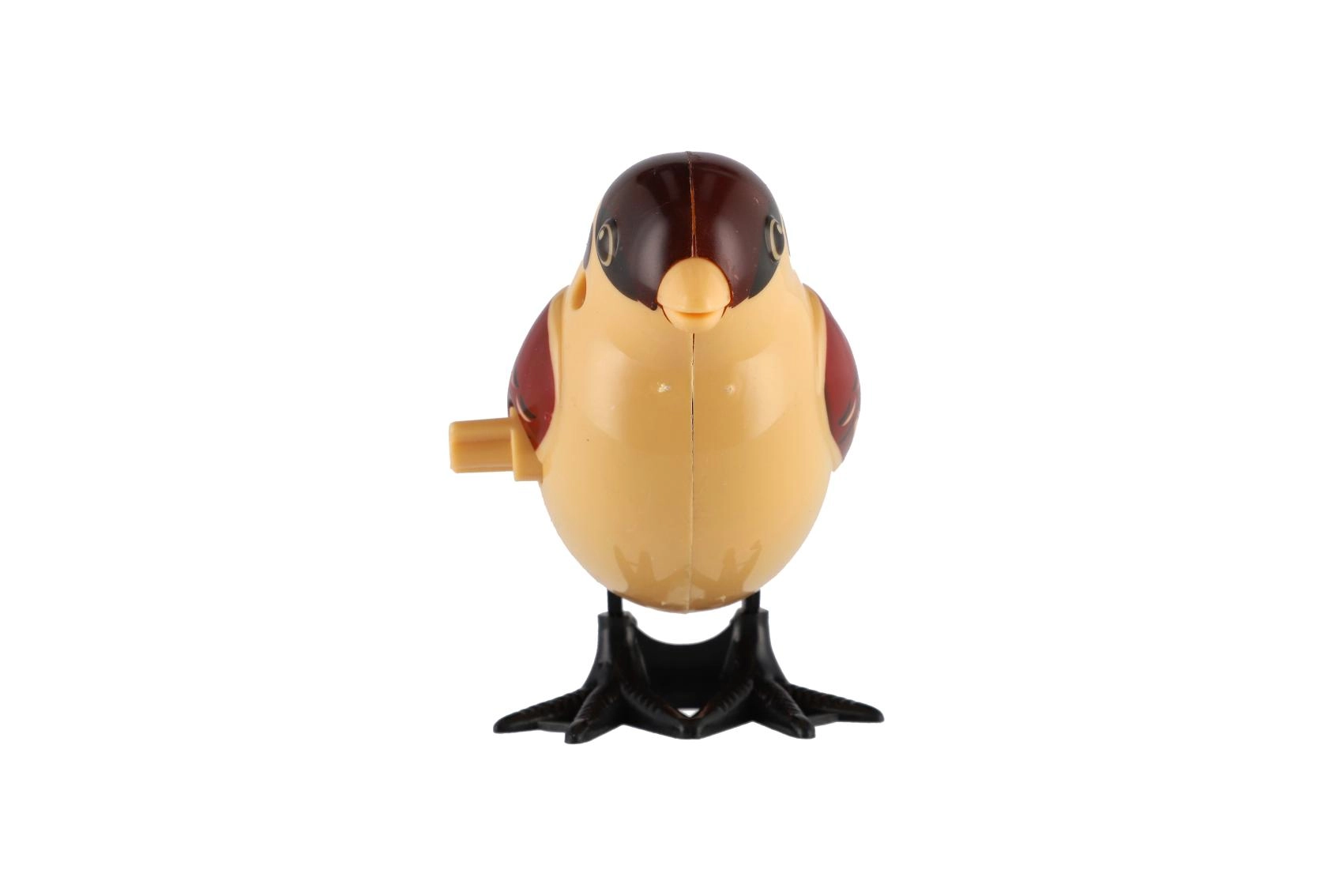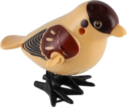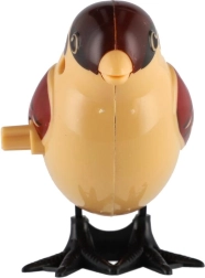 Χαριτωμένο πλαστικό πουλάκι με κλειδί, που μετά το κούρδισμα πηδάει πάνω στο τραπέζι ή στο πάτωμα και προσφέρει χαρά στα παιδιά που αγαπούν τα ζωάκια και την κίνηση.