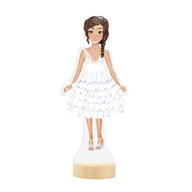 Μαγνητική Κούκλα Γάμος φέρνει διασκέδαση και δημιουργικότητα στο παιδικό δωμάτιο. Με αυτή την κούκλα, τα παιδιά μπορούν να ντύνουν τη φιγούρα τους με διάφορα σύνολα, χάρη στα τρία φύλλα με μαγνητικά κομμάτια ρούχων, παπουτσιών και αξεσουάρ.