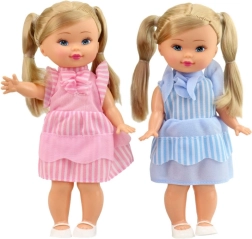 Χαριτωμένη κούκλα με κοτσίδες και τιράντες, ιδανική για κάθε μικρή δεσποινίδα. Τα ριγέ ρούχα της με διακοσμητική λεπτομέρεια σίγουρα θα γοητεύσουν κάθε παιδική καρδιά.