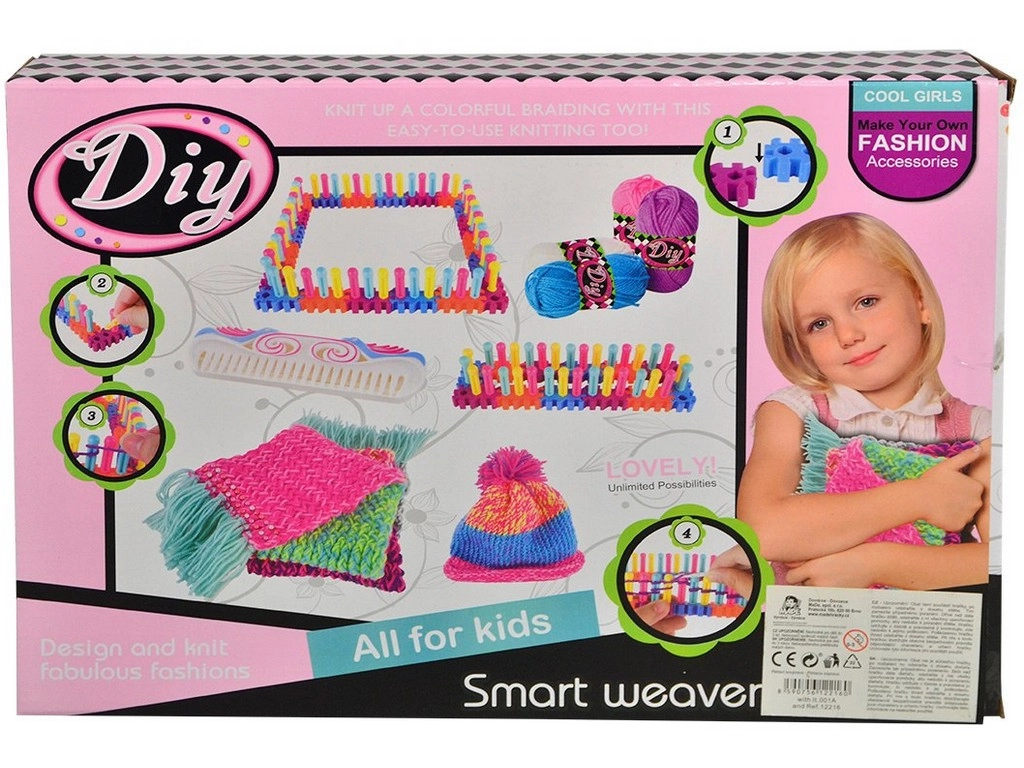Αυτή η πλεκτική σειρά είναι ιδανική για παιδιά από 3 ετών που θέλουν να δοκιμάσουν νέες δημιουργικές δραστηριότητες. Με διαστάσεις 40 x 29 x 6 cm προσφέρει άφθονο χώρο για τη φαντασία τους. Το παιχνίδι είναι κατασκευασμένο από ποιοτικό πλαστικό, γεγονός που εξασφαλίζει αντοχή και ασφάλεια κατά το παιχνίδι.