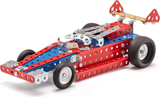 Αυτό το κατασκευαστικό σετ της Merkur δίνει στα παιδιά την ευκαιρία να βουτήξουν στον κόσμο των αγωνιστικών αυτοκινήτων. Επιτρέπει τη συναρμολόγηση δέκα διαφορετικών μοντέλων από ποιοτικά μεταλλικά και πλαστικά κομμάτια. Το παιχνίδι συνιστάται για παιδιά άνω των 6 ετών.