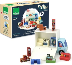 Το ξύλινο λογικό παιχνίδι Φόρτωσέ το σωστά από τη Vilac προσφέρει μια έξυπνη πρόκληση για παιδιά που τους αρέσει να λύνουν πώς να τακτοποιήσουν σωστά τα έπιπλα μέσα στο φορτηγό μετακόμισης. Αυτό το παιχνίδι, εμπνευσμένο από τις εικονογραφημένες δημιουργίες της Ingela P. Arrhenius, βοηθά στην ανάπτυξη της λογικής σκέψης, του χωρικού προσανατολισμού και της λεπτής κινητικότητας. Τα παιδιά έχουν στη διάθεσή τους 19 κομμάτια επίπλων που πρέπει να τοποθετήσουν στο φορτηγό.