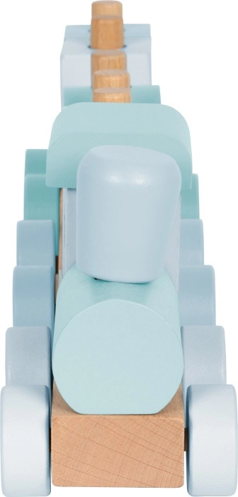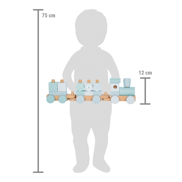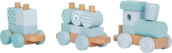 Το ξύλινο τρενάκι της Small Foot είναι ιδανικό για μικρούς δημιουργούς με μεγάλη φαντασία. Αποτελείται από μια ατμομηχανή και δύο βαγονάκια, πάνω στα οποία τοποθετούνται συνολικά 14 χρωματικά ταιριαστά δομικά κομμάτια. Τα τουβλάκια τοποθετούνται εύκολα σε ξύλινες ράβδους, βοηθώντας τα παιδιά να αναπτύξουν τη λεπτή κινητικότητα και τον συντονισμό των κινήσεων. Χάρη στις απαλές αποχρώσεις σε συνδυασμό με τους φυσικούς τόνους του ξύλου, το παιχνίδι είναι όχι μόνο διασκεδαστικό αλλά και αισθητικά ελκυστικό.